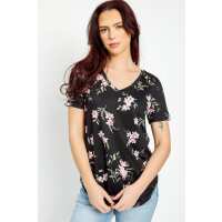 Floral V-Neck Short Sleeve Tee Black / S