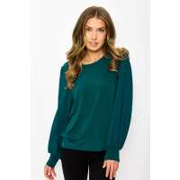 Banded Chiffon Balloon Sleeve Top Midnight Green / S