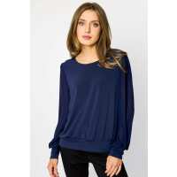 Banded Chiffon Balloon Sleeve Top French Navy / L