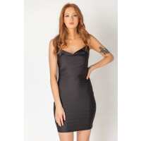 Stretch Satin Drape Neck Dress XXS / Black