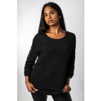 Glitter 3/4 Ladder Sleeve Top Black / L