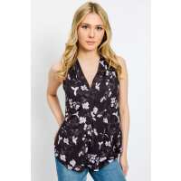 Floral Sleeveless V-Neck Top in Taupe Black/Taupe / S