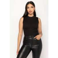 Mockneck Rib Sleeveless Bodysuit Black / XL