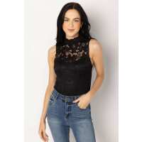 Black Lace Mock Neck Bodysuit Black / L