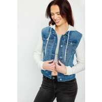 WallFlower Bella Wash Denim Jacket with Sweater Sleeves and Hood Bella / XXL