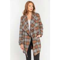 Isabelle Plaid Waterfall Jacket XL / Cognac/Grey