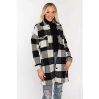 Plaid Sherpa Shacket M / Ivory/Black