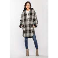 Dark Plaid Shacket with Sherpa Lining XL / Black/White