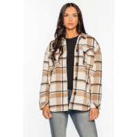 Brushed Plaid Shacket L / Ivory/Brown