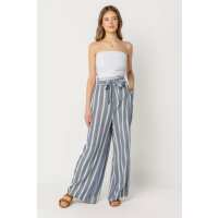 Stripe Palazzo Pant with Tie-Belt Blue / L