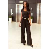 Knit Crepe High-Rise Pant with Chain-Belt Black / M