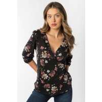 Floral Print 3/4 Balloon Sleeve Top Black/Rose / S