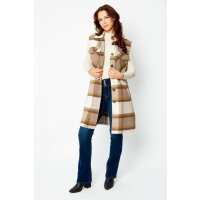 Plaid Sleeveless Longline Shacket Brown/Cream / L