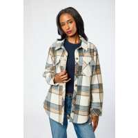 Stella Plaid Polar Fleece Shacket Cream/Mocha/Grey / XXL