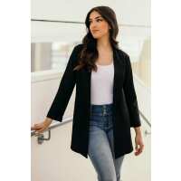 Longline Blazer with Roll-Up Sleeves M / Black