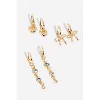 Bow, Heart and Rhinestone Mini Hoop Earring Set