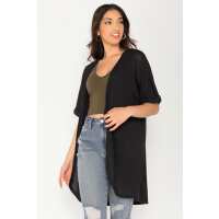 Longline Blazer with Roll-Up Sleeves L / Black