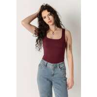 Brushed Double Layer Square Neck Tank L / Eggplant