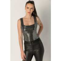 Disco Sequin Sleeveless Top L / Black/Silver