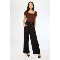 Knit Crepe Wide-Leg Pant with D-Ring Belt Black / L