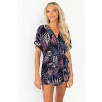 Tropical Crossover Romper with Tie-Belt L / Navy/Pink