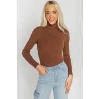 Ribbed Long Sleeve Turtleneck M / Pecan