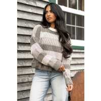 Stripe Chenille Crew-Neck Long Sleeve Sweater Olive Combo / L