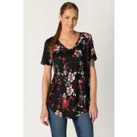 Floral Brushed Short Sleeve V-Neck Tunic M / Black/Wine