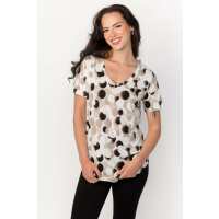 Abstract Dot Short-Sleeve V-Neck Top Ivory/Sand/Black / L