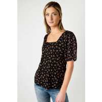 Ditsy Knit Square Neck Top Black/Rust / XXL