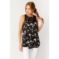 Floral Sleeveless Top with Lace Trim Black/Violet / XL