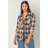Blue & Ivory Cozy Plaid Knit Button-Up Shirt S / Ivory Combo