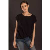 Airflow Short Sleeve Blouse with Knotted Hem S / Black