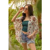 Cream Floral Chiffon Kimono Cream/Rose / M