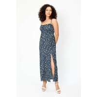 Ditsy Spaghetti Strap Maxi Dress with Side Slit Navy / S