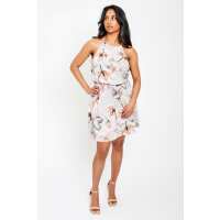 Large Floral Sleeveless Dress with Elastic Waist Grey/Pink / L