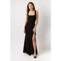 Elegant Lace-Up Slit Mermaid Crepe Dress Black / S