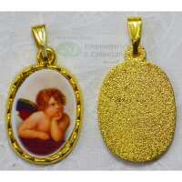 Cherub Picture Medal Pendant, 20mm x 15mm Gold Tone Border, Made In Italy Quality