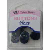 Hemline / Vizzy Buttons, Fish Eye 2 Hole 11mm, Pack of 13, SLATE BLUE