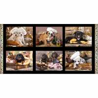Puppies in the Kitchen 0124B 6 Block PANEL 100% Cotton Fabric, per 60cm Panel