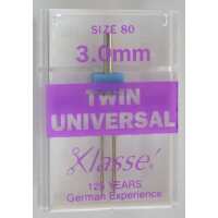 Klasse Sewing Machine Needles, TWIN UNIVERSAL 3.0 80/12, Pack of 1 Needle