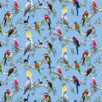 Australian Birds Of The Bush Branches on BLUE, 112cm Wide Cotton Fabric 0158I
