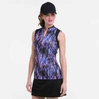 SLEEVELESS SPLIT ZIP MOCK W/ GLASS PRINT BLACK MULTI / M