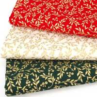Fat Quarter Bundle - Christmas Cotton - Red, Green & Ivory Gold Leaf