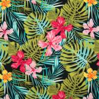 Rose & Hubble - Tropical Lily on Black - 100% Cotton Poplin 1 Metre