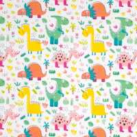 Colourful Dinosaur on White - Polycotton Fabric 1 Metre