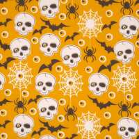 Eyeballs, Skulls, Bats & Webs on Orange - Polycotton Fabric 1 Metre