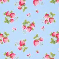 Summer Strawberries - Sky Blue - Polycotton Fabric 1 Metre