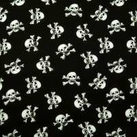 White Skulls on Black Polycotton 1 Metre