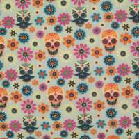 Day of the Dead Halloween Skulls on Silver - Polycotton Half a Metre